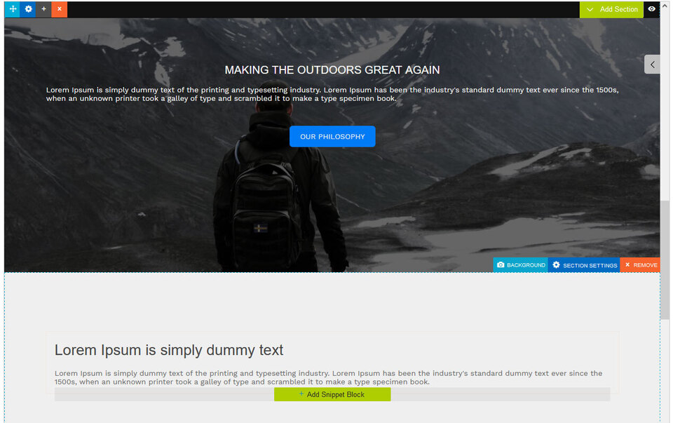 - Green Add Section Button - This will pop up a window where you can choose a new section layout to add below the current one